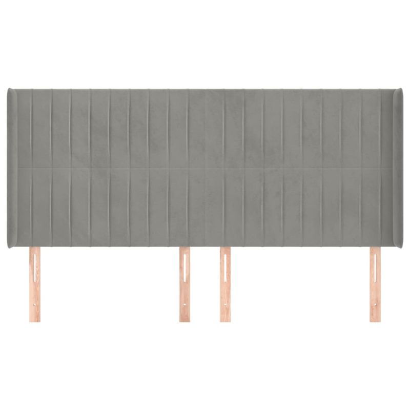 Горна табла за легло с уши, светлосива,183x16x118/128см, кадифе