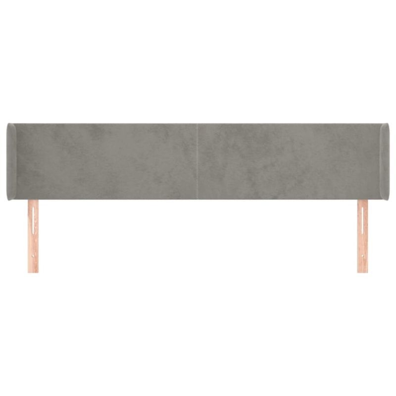 Горна табла за легло с уши, светлосива, 163x16x78/88 см, кадифе