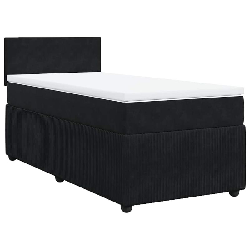 Боксспринг легло с матрак, черно, 90x200 см, кадифе