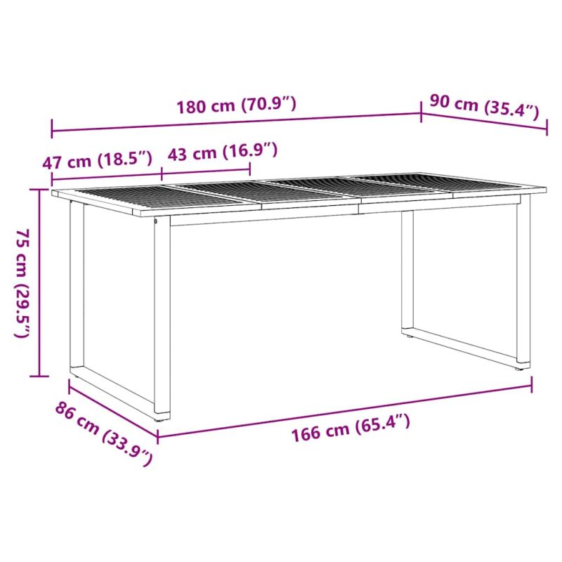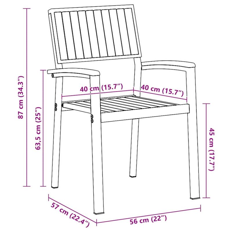 Този Модерен градински комплект за хранене е точно за съвременните открити пространства. С него ще имате стилно и удобно място за хапване навън. Чистият и семпъл дизайн го прави идеален за всяко място, а естественият завършек от акация придава елегантност. Качествени материали: Този комплект е леко направен от масивна акациева дървесина с невероятна текстура и чар, комбинирани със здрав стоманен каркас, който издържа на времето и изглежда страхотно. Включени компоненти: В комплекта ще намерите стабилни подлакътници и облегалки от акация, а също така и голяма правоъгълна маса, която е идеална за семейни вечери или партита. Стил и функция: Модерният дизайн с чисти линии е привлекателен и ненатрапчив, лесно се съчетава с различни стилове на декорация. Препоръчителни употреби: Идеален за градински и терасови вечери, празници и всякакви събирания на открито, с много място за вкусна храна. Лесна поддръжка: Поддържайте комплекта в перфектно състояние, просто го избърсвайте с кърпа, за да премахнете праха