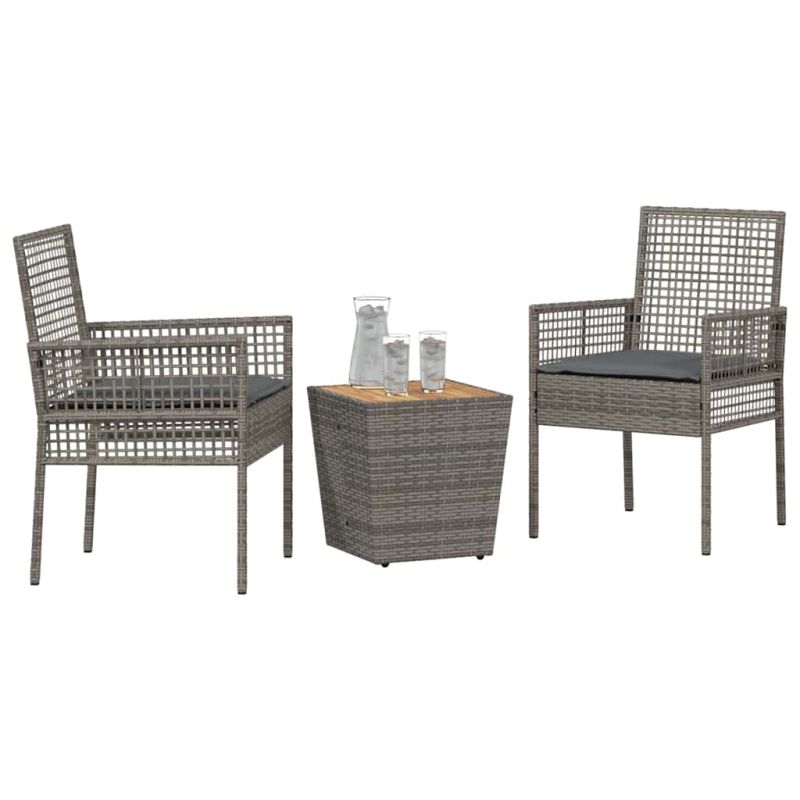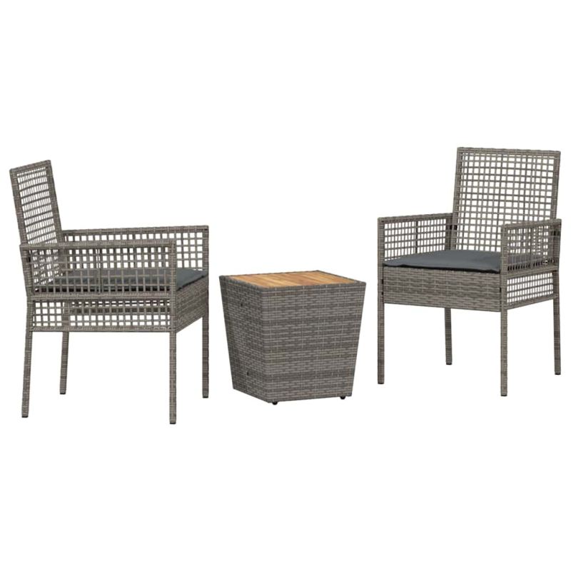 Градински бистро комплект 3 pcs Сив полиратан