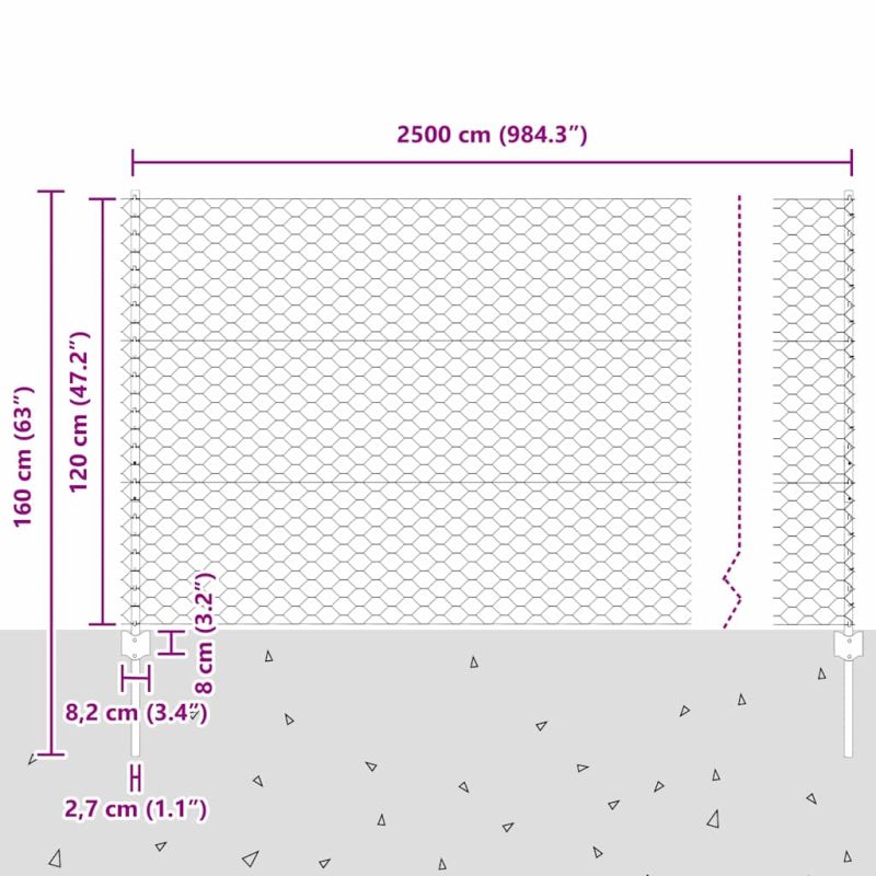 Ограда с пост Сребрист 1,2 x 25 m Стомана