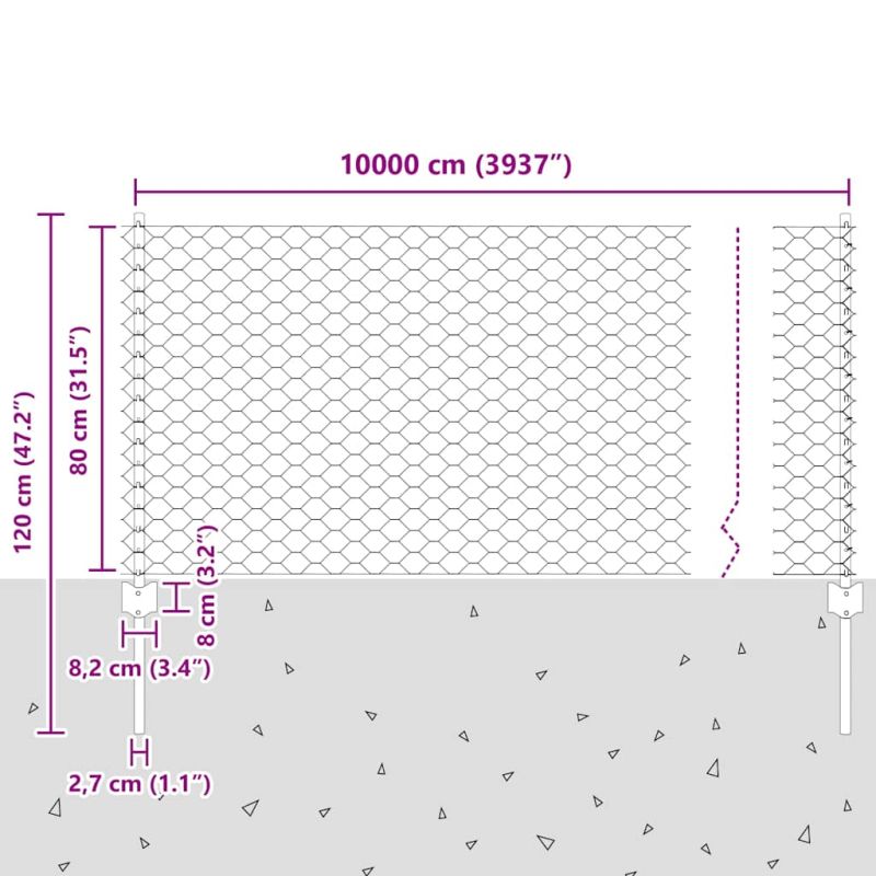 Ограда с пост Сребрист 0,8 x 100 м Стомана