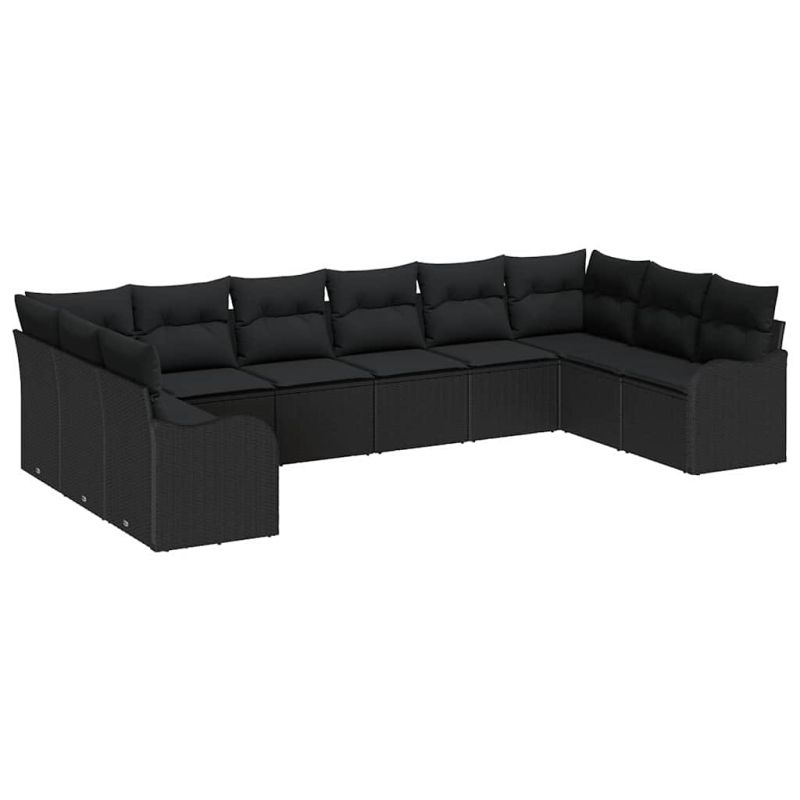 Градински Софа Комплект 10 pcs Черно полиратан