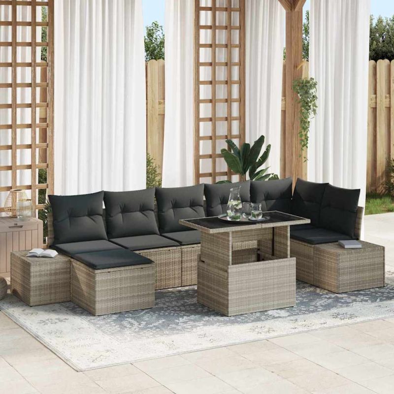 Градински Софа Комплект с възглавница 8 pcs Светлосиво