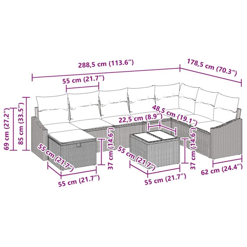 Градински Софа Комплект с възглавница 9 pcs полиратан