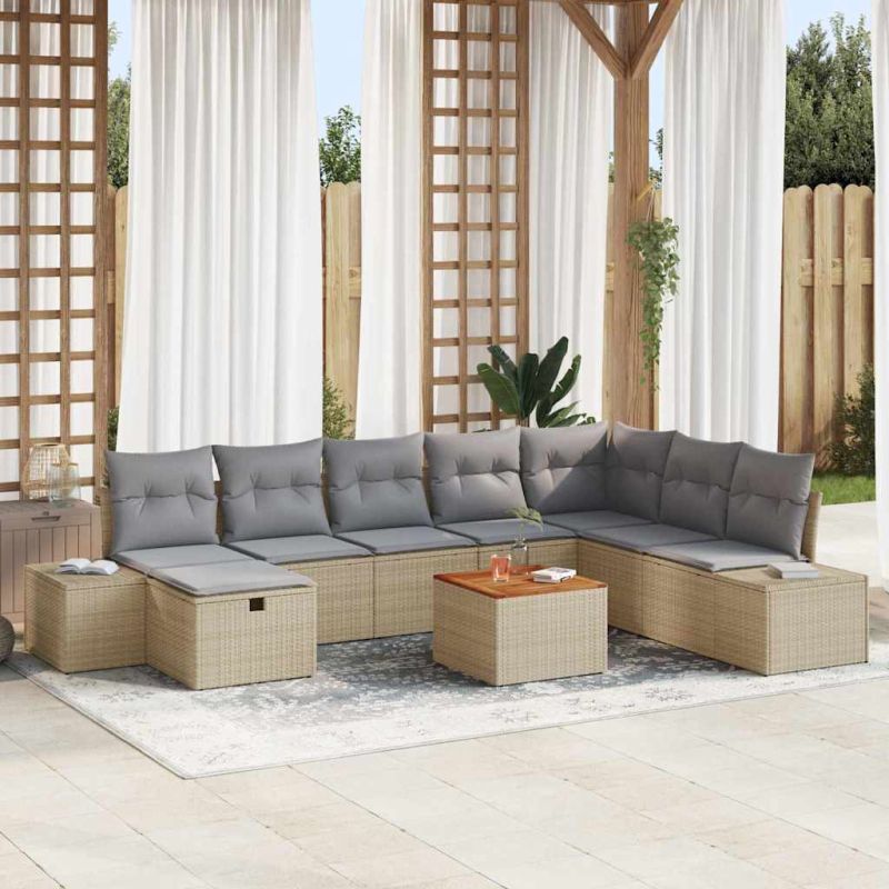 Градински Софа Комплект с възглавница 9 pcs Бежово полиратан