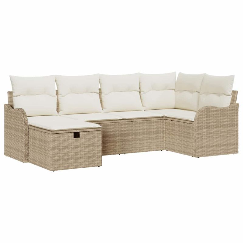 Градински Софа Комплект с възглавница 6 pcs Бежово Полиратан