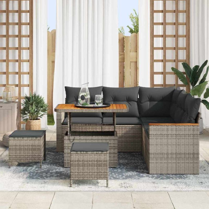 Градински Софа Комплект 8 pcs Сив полиратан