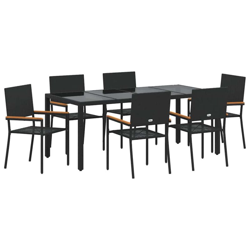 Комплект за хранене в градината 7 pcs Черно полиратан