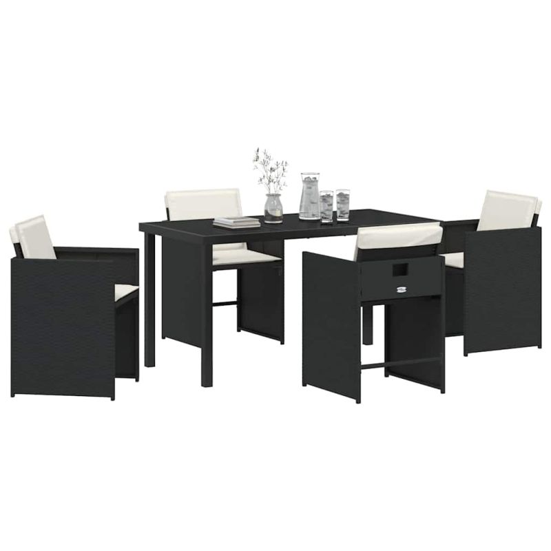 Комплект за хранене в градината 5 pcs Черно полиратан