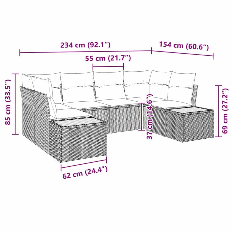 Градински Софа Комплект 6 pcs Черен и кремав Полиротанг