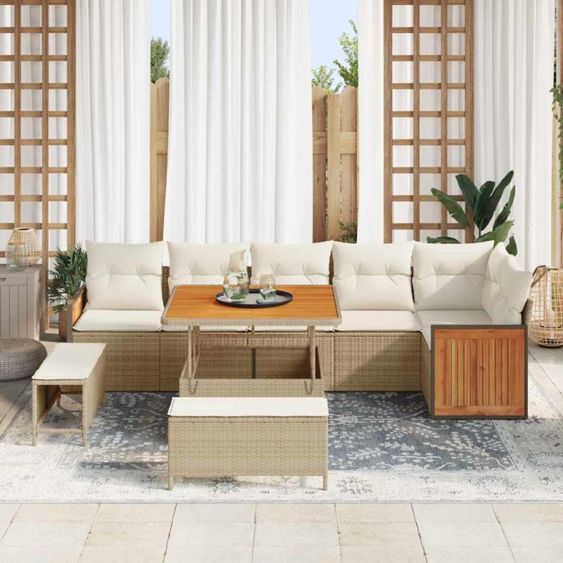 Начало Дом и градина Мебели Външни мебели Външно обзавеждане Градински дивани Градински Софа Комплект с възглавница 9 pcs Бежов и кремав