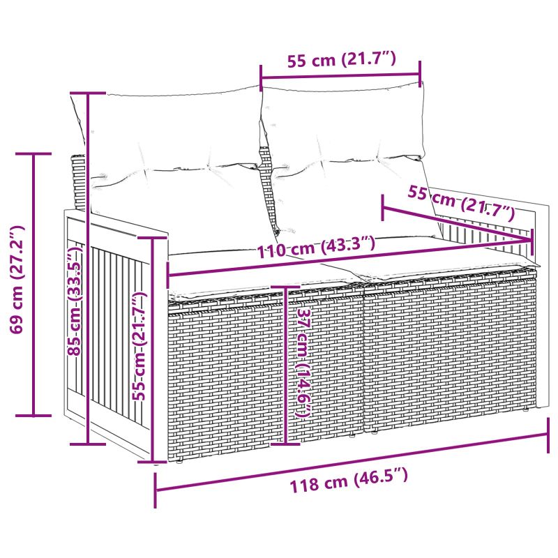 Този модерен комплект градински дивани е идеален за тераси и открити пространства. Съчетава елегантност с функционалност и притежава чисти линии. Модерният дизайн се вписва идеално в съвременния стил. Благодаря на регулируемата маса, можете лесно да преминавате между неформални хранения и спокойни моменти. Издръжлива конструкция: Този градински комплект е направен от полиратан и прахово боядисана стомана, устойчиви на атмосферни условия, така че да изглежда добре дълго време и да е практичен. Материалите осигуряват дълготрайност, предлагайки стилно решение за сядане на открито. Модулен дизайн: С модулния си дизайн, комплектът може да се подрежда по много начини, адаптира се лесно на всяко пространство или стил. Можете да го настроите така, че да е идеален за социални събития или уютни вечери. Регулируема маса: Масата с регулируема височина лесно преминава от кафе маса до маса за хранене, предлагайки многофункционалност. Идеално е за следобедни чайове или вечери. Комфортни елементи: Включва свалящи се възглавници с ципове, които подобряват комфорта. Плътните полиестерни възглавници са удобни, а полиратановите облегалки осигуряват подкрепа. Устойчиви на времето характеристики: Мебелите, изработени от UV-устойчиви материали, запазват цвета си дори при слънце, осигурявайки ви свеж и дълготраен вид за дълго време. Можете да разчитате, че ще бъдат здрави през пролетта и лятото.