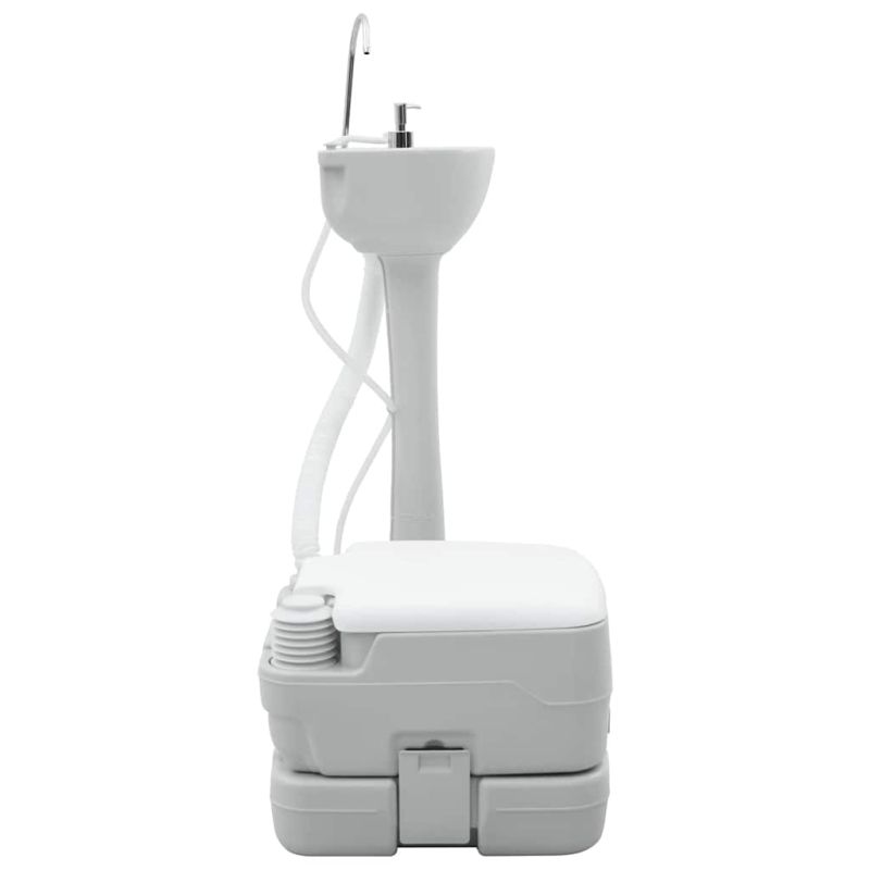 Комплект тоалетна за къмпинг 2 pcs Сив и бял
