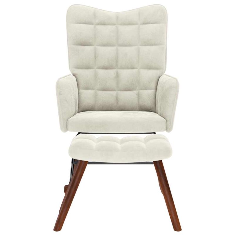Търсите ли стол за почивка след натоварен ден? Този удобен люлеещ се стол с табуретка е перфектният избор! Мек и удобен материал: Кадифената материя се отличава с мека и гладка повърхност, която осигурява приятно усещане върху кожата, носейки ви топлина и максимален комфорт.Здрава и стабилна рамка: Рамката от шперплат и метал на фотьойла осигурява здравина и стабилност.Комфортно седене: Фотьойлът се предлага с дебело подплатена седалка и облегалка, както и подлакътници за голям комфорт.Дървени крачета: Дървените крачета осигуряват отлична стабилност, като същевременно придават на стола естествен и приятен вид. С дизайна на дългите люлеещи се парапети, фотьойлът няма да се преобърне лесно.Многофункционална табуретка: Табуретката е многофункционална, като служи като удобна поставка за крака, когато се отпускате на стола, или като допълнителна седалка.Широки приложения: Този шезлонг е многофункционално и стилно допълнение към зоната за отдих. Независимо дали го поставите близо до дивана в хола или създадете уютен кът в спалнята или кабинета си, той ще подобри естетиката на вашето жилищно пространство.
