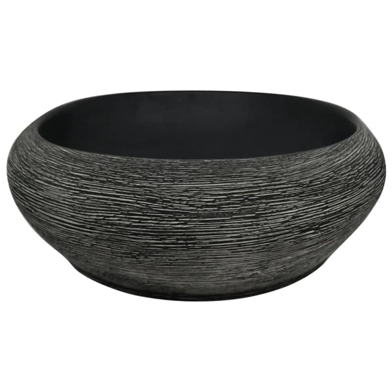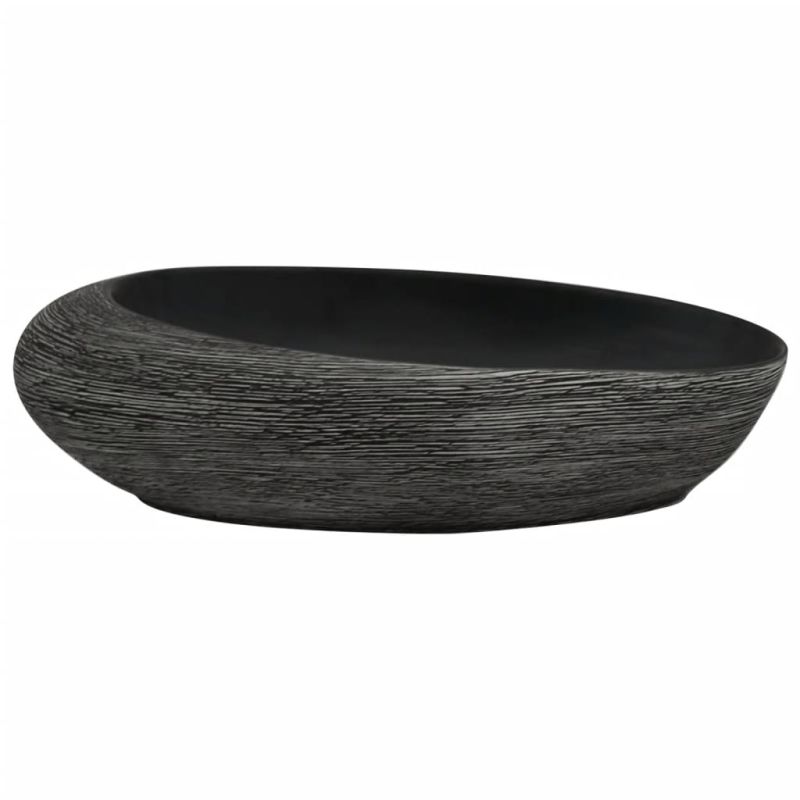 Мивка за плот, сиво и черно, овална, 59x40x14 см, керамика