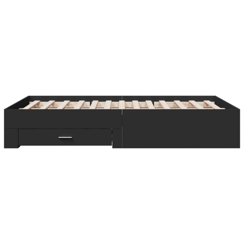 Рамка за легло с чекмеджета, черна, 140x190 см, инженерно дърво