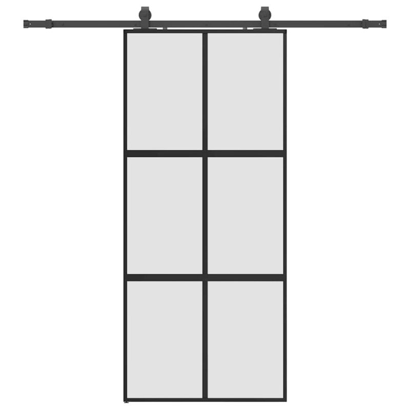 Създайте стилен преход от една стая към друга с тази плъзгаща се врата! Издръжлив материал: Благодарение на интелигентната си структура закаленото стъкло е по-здраво и издръжливо от всяко друго стъкло. Закаленото стъкло е известно с това, че издържа на силни удари, надрасквания, удари и др.Стабилна и дълготрайна рамка: Алуминият е едновременно лек и издръжлив, с отлична устойчивост на корозия благодарение на самозащитния си оксиден слой. Тази алуминиева врата е проектирана за дълготрайност, което я прави идеален избор за всеки, който търси стабилна врата.Безопасен и безшумен: Благодарение на стопера, който спира вратата при отваряне или затваряне чрез задействане на стоп буферите, плъзгащата се врата може да се отваря и затваря безшумно.Дизайн за поверителност: Матираното стъкло пропуска част от светлината, за да създаде светла жилищна площ и едновременно с това неприкосновеност на личния живот.Спестяващ място дизайн: Тази плъзгаща се врата спестява място и прави стаята по-просторна. Тя е първият избор за семпъл и атмосферичен интериорен дизайн в модерен стил.Лесен за използване: В обхвата на доставката е включен и комплект обков за плъзгащи се врати, така че монтажът е безпроблемен. Комплектът обков е изработен от прахово боядисана стомана и по този начин допринася за здравината на вратата. Добре е да се знае:За монтажа можете да се консултирате с нашето ръководство за монтаж на комплектите за врати и плъзгащи се врати.
