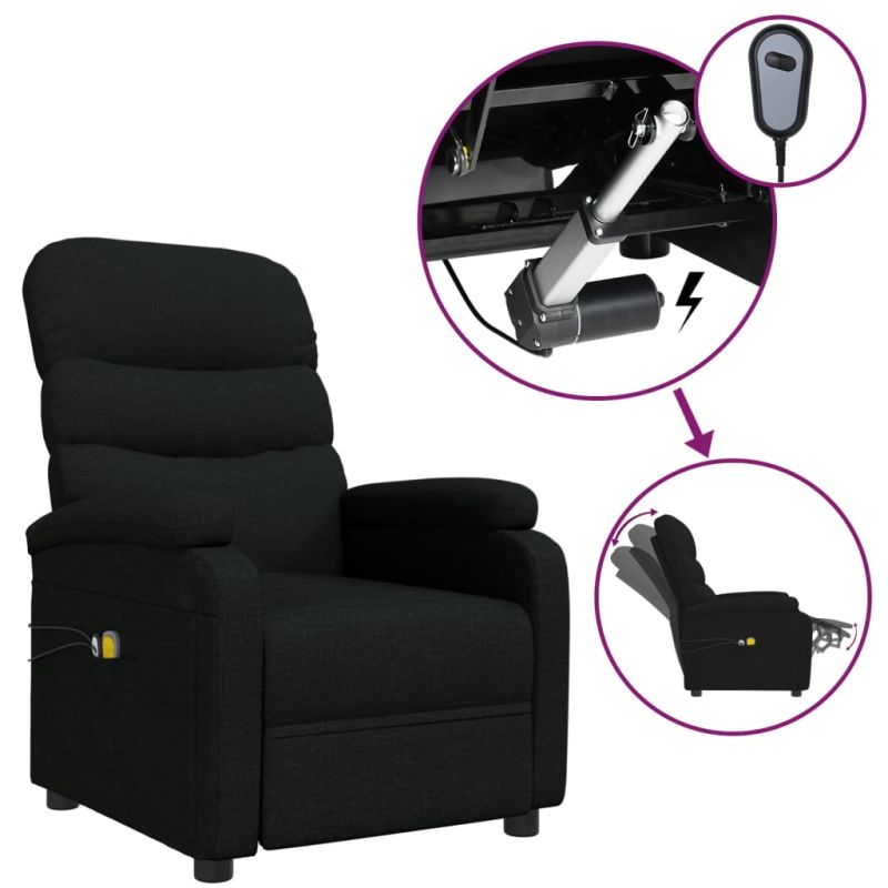 Облегнете се и се отпуснете в този изключително комфортен електрически масажен стол! Електрическа функция за накланяне: Столът с облегалка е оборудван с електрически мотор за функция за накланяне. Разполага с 3 позиции на легнало положение, така че можете лесно да регулирате облегалката и поставката за крака с включеното ръчно управление с 2 бутона според вашето удобство.Функция за вибрация: Представените 6 масажни точки ви позволяват да изпитате по-целенасочен масаж. Освен това включеното ръчно управление ви позволява да избирате различни програми за масаж. Функцията за масаж се захранва от USB конектора, но сертифицираният 5V USB източник на захранване не е включен.Удобно седене: Дебело подплатената седалка, облегалката и широките подлакътници, покрити с текстил, осигуряват уютно и топло усещане, което ви кара да се чувствате като в прегръдка, докато седите. Тъканта се отличава със семпъл и изчистен вид и е дишаща и издръжлива.Здрава и стабилна рамка: Рамката, изработена от дърво и метал, осигурява здрава структура и стабилност. Този накланящ се фотьойл е удобен и издръжлив. Този уред не е предназначен за използване от лица (включително деца) с намалени физически, сетивни или умствени способности, или с липса на опит и знания, освен ако не са под наблюдение или не са получили инструкции за използването на уреда от лице, отговорно за тяхната безопасност. Този продукт не е играчка. Не позволявайте на деца да си играят с уреда. Този продукт се захранва с DC 5V, но сертифицираният 5V USB източник на захранване не е включен в комплекта. Моля, имайте предвид, че трябва да използвате само сертифициран DC 5V вход. По-високото напрежение може да доведе до прегряване и да причини повреда на устройството, както и потенциален риск от прегряване и пожар.