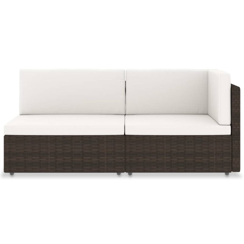 Този модулен диван от полиратан съчетава стил и функционалност и е предназначен за целогодишно ползване на открито. Благодарение на устойчивия на атмосферни влияния РЕ ратан, този диван е лесен за почистване, издръжлив и подходящ за ежедневна употреба. Диванът се отличава със здрава стоманена рамка с прахово покритие, която го прави изключително издръжлив. Той също така е лек и модулен, което го прави напълно функционален и лесен за преместване, за да се впише към всеки екстериор. Дебелите, подвижни възглавници са изключително комфортни. Можете да го комбинирате с други модулни сегменти, които са налични в падащото меню, за да създадете ваши собствени конфигурации на градинска мека мебел! Можете да намерите подобни примери в последните 9 снимки. Забележка: Препоръчваме покриването на комплекта по време на дъжд, сняг или скреж.