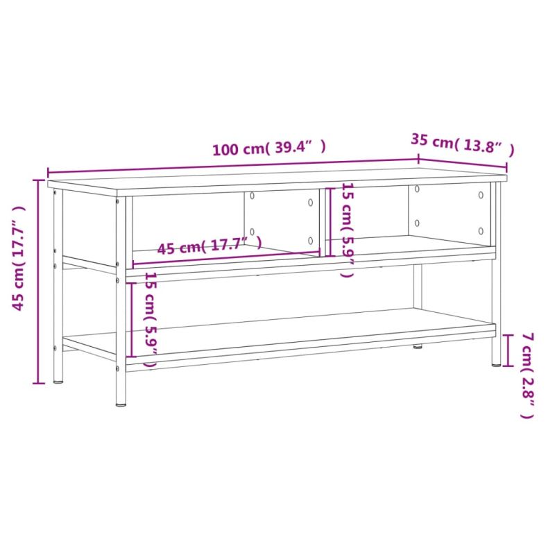 Този класически ТВ шкаф е практично, но и атрактивно допълнение към вашия интериор. Издържлив материал: Инженерната дървесина е с изключително качество с гладка повърхност и също така се отличава със здравина, стабилност и устойчивост на влага.Достатъчно място за съхранение: ТВ поставката разполага с 2 отворени отделения и 1 рафт, където да подредите DVD плейъри, конзоли за игра, стрийминг устройства и медийни носители по достъпен и организиран начин.Железни крака: Железните крака добавят индустриален стил към вашия интериор, като същевременно гарантират стабилност.Декоративна функция: Здравата горна част на ТВ модула е идеална за нареждане на декоративни предмети, като рамки за снимки и растения.