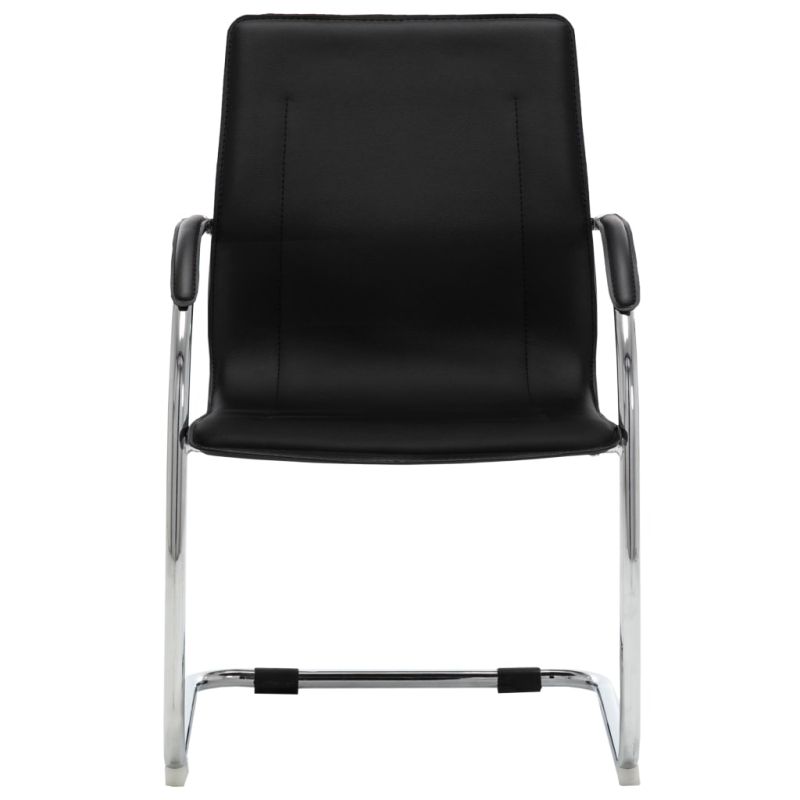 Този конзолен офис стол със съвременен дизайн е уникален артикул, добавящ уют към вашия работен ден. Този офис стол с подлакътници се отличава с ергономично проектирана облегалка, която ви освобождава от болки в гърба през натовареното работно време. Меката подплатена седалка осигурява комфорт при седене през целия ден. Седалката и облегалката са изработени от качествена изкуствена кожа за години на употреба. Освен това здравите хромирани железни крака на стола с модерен дизайн осигуряват чудесна стабилност. Максимално 110 кг на седалка. Съобразете се с риска от открит огън и други източници на силна топлина в близост до продукта.