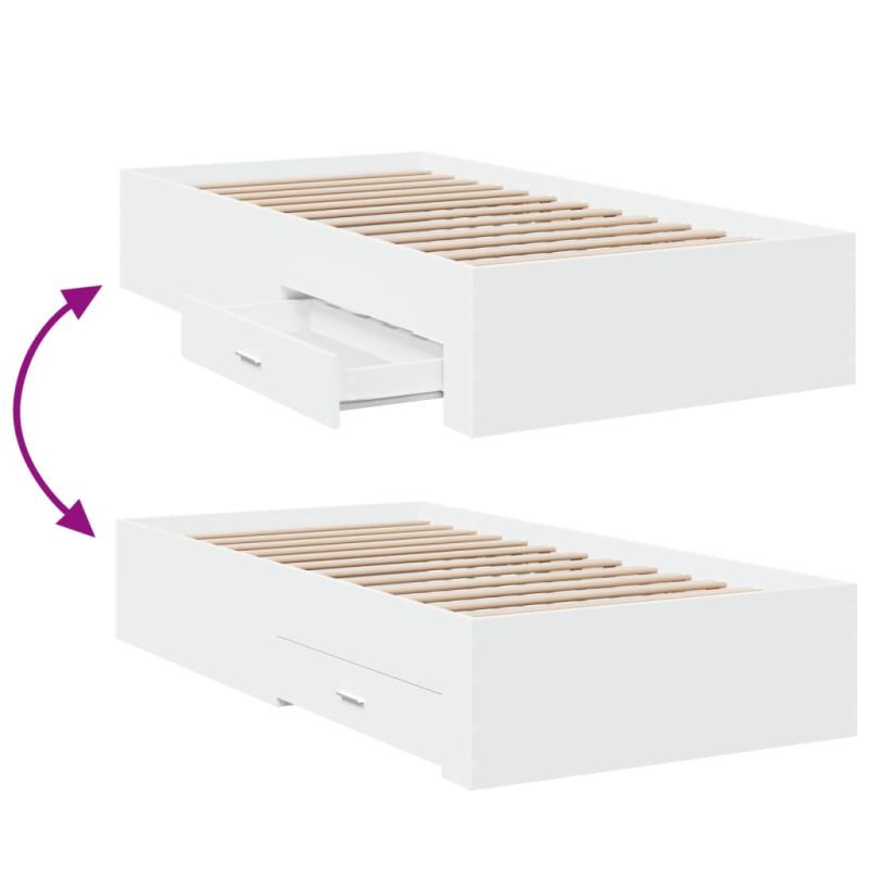 Рамка за легло, с чекмеджета, без матрак, бяла, 90x200 см