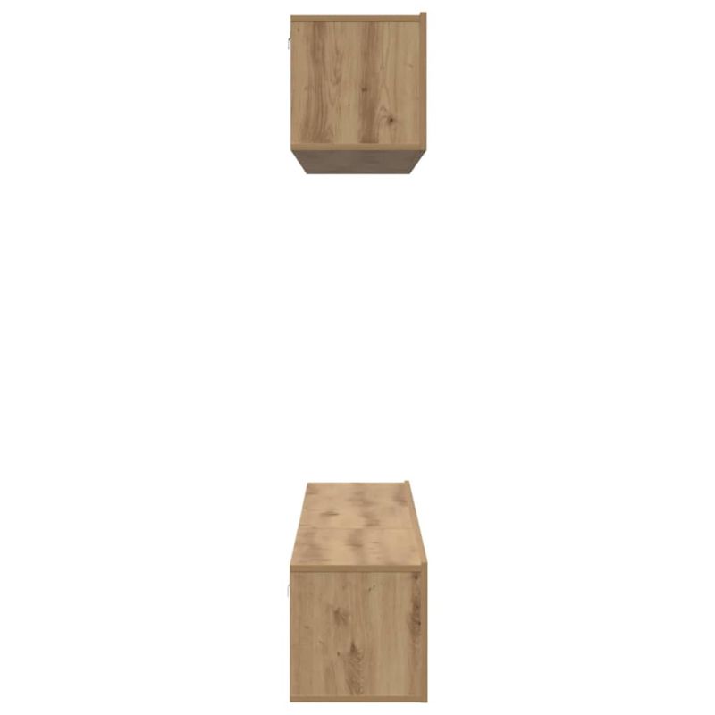 Този комплект за ТВ шкафове е перфектното съчетание от стил и полезност. Със семплия си дизайн, той е идеален за съвременни домове. Има кубични отделения, в които можете удобно да подредите любимите си неща, техника и декор. Инженерната дървесина ще ви осигури дълготрайност и се вписва идеално в различни интериори. За дизайнерите, които обичат да държат пространството подредено и стилно, той е направо чудесен. Инженерна дървесина: Изработен е от инженерна дървесина, което осигурява дълготрайност и елегантен завършек. Силният материал изглежда стилно и издържа във времето. Включени компоненти: С плоските рафтове и удобните врати с панти, този шкаф е страхотно решение за вашите развлекателни устройства и различни вещи. Функционален дизайн: Шкафът е проектиран да максимизира пространството, с кубични отделения, осигуряващи място за всякакви неща, като същевременно изглежда подредено и стилно. Практично използване: Идеален е за дневни или пространства за забавления, и се вписва във всякакви домашни условия, предлагайки гъвкаво съхранение. Инструкции за поддържане: За да запазите чистотата на шкафа, просто го избърсвайте с кърпа, за да премахнете прах и замърсявания и да го запазите красив за години напред.