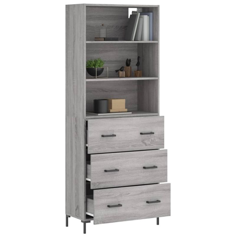Висок шкаф, сив сонома, 69,5x34x180 см, инженерно дърво
