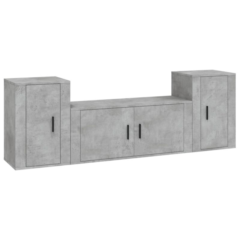 Комплект ТВ шкафове от 3 части, бетонно сив, инженерно дърво
