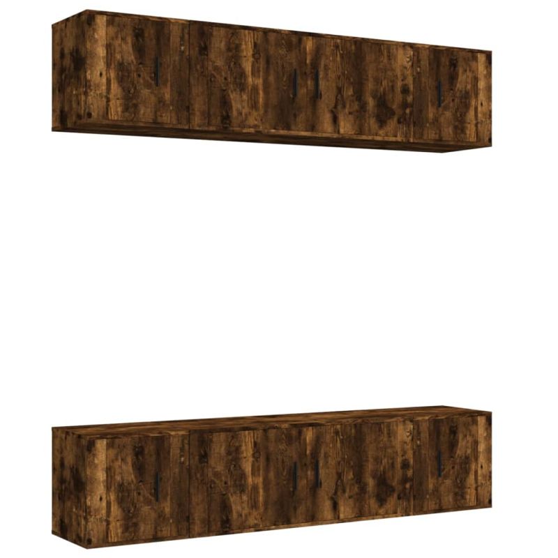 Комплект ТВ шкафове от 6 части, опушен дъб, инженерно дърво