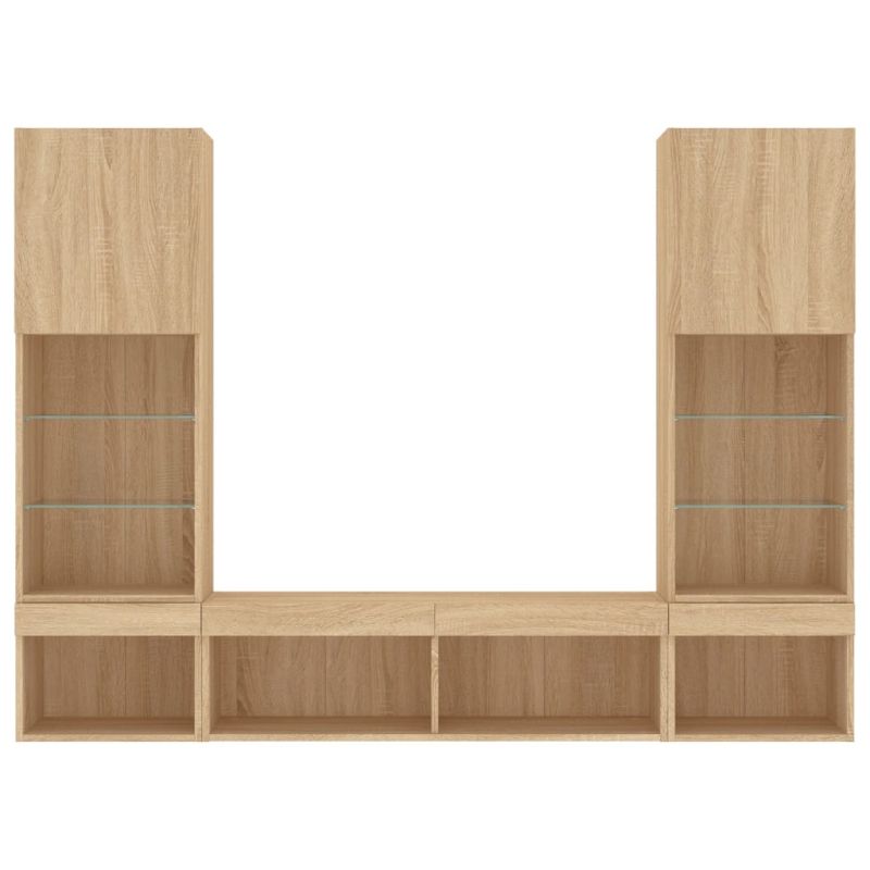 Начало Дом и градина Мебели Секции и поставки за телевизори ТВ стенни модули с LED, 5 части, сонома дъб, инженерно дърво