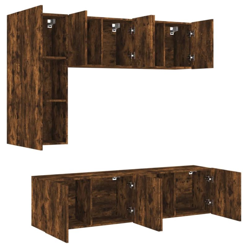 ТВ стенни модули, 5 части, опушен дъб, инженерно дърво