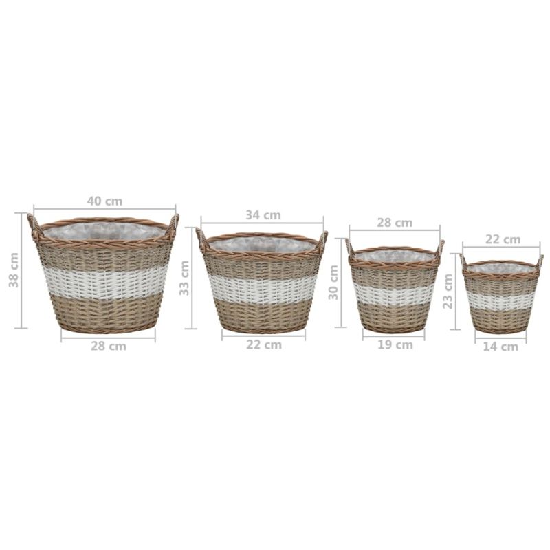 Нашето повдигнато легло от ракита е перфектен избор за отглеждане на зеленчуци, билки и цветя на балкона, в градината, вътрешния двор и др. Кошницата за растения на открито е изработена от ракита с РЕ вложка и излъчва традиционен рустик чар. Лесно можете да носите тези върбови саксии за дръжките. Доставката включва 4 ратанови плантера с различни размери. Важна забележка: Тези артикули са ръчно изработени, което прави всеки от тях уникален; доставката е на случаен принцип.