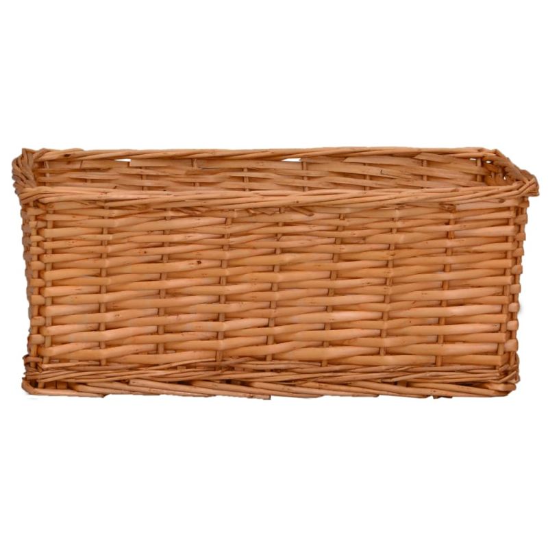 Комплектът органайзери от 4 части с класически функционален дизайн ще бъде практично рустик допълнение към вашето ежедневие. Изработени от върба, кошниците за организиране са здрави и издръжливи. Правоъгълните кутии са универсални и предназначени за ежедневно подреждане, а най-голямата кутия може да се превърне в кош за пране, осигуряващ достатъчно място за вашите дрехи. Атрактивният тъкан стил добавя естествен чар на комплекта. Благодарение на дизайна, който спестява място, те могат да се подреждат в най-голямата кошница, когато не се използват. Доставката включва 4 правоъгълни кошници.