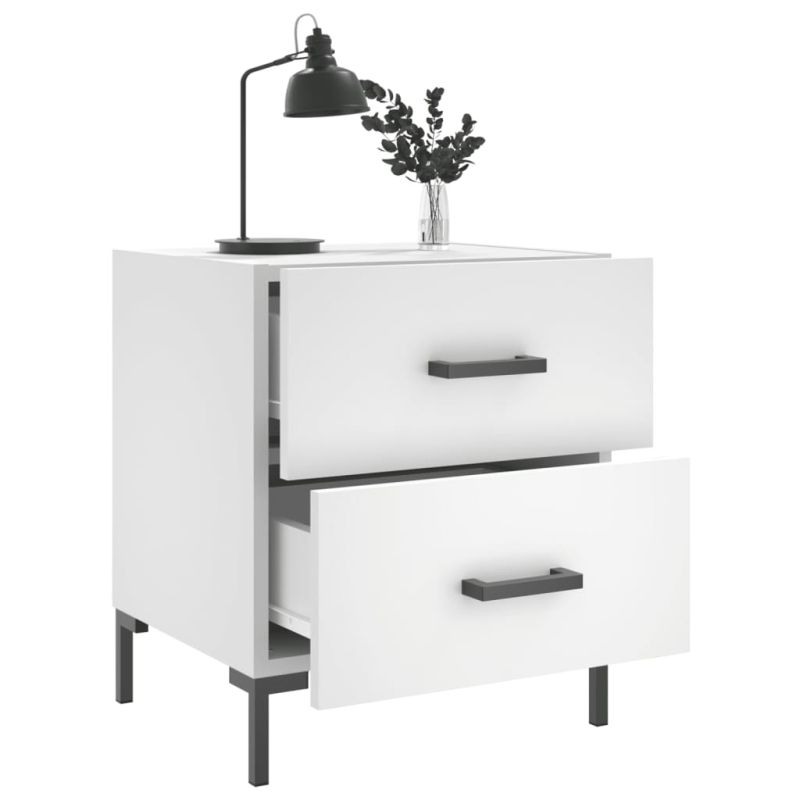 Внесете полъх на модерен чар във вашия интериор с това нощно шкафче! Издържлив материал: Инженерната дървесина е с изключително качество с гладка повърхност и също така се отличава със здравина, стабилност и устойчивост на влага. Просторно място за съхранение: Нощното шкафче има чекмеджета, осигуряващи просторно място за съхранение, за да държите вашите книги, мултимедийни уреди и други предмети подръка.Декоративна функция: Можете също така да поставите любимите си снимки, декорации или цветя върху страничния шкаф, за да обогатите живота си. Метални крака: Металните крака добавят спокоен стил към вашия интериор, като същевременно осигуряват стабилност.