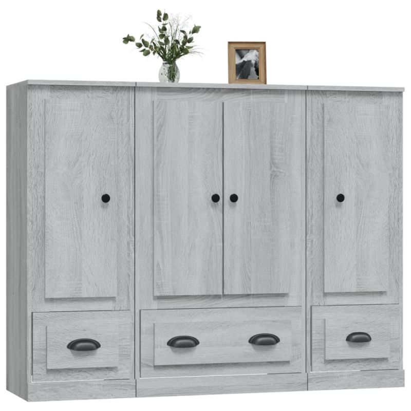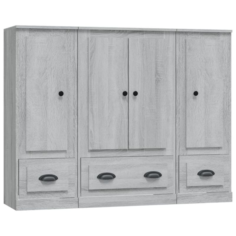 Високи шкафове, 3 бр, сив сонома, инженерно дърво