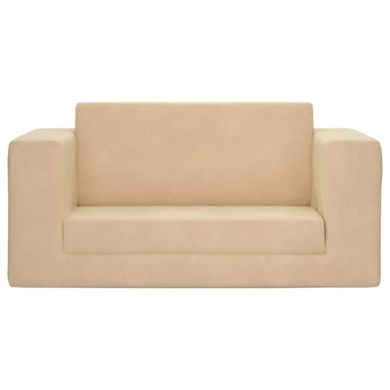 Детско диванче-легло, 2-местно, кремаво, мек плюш