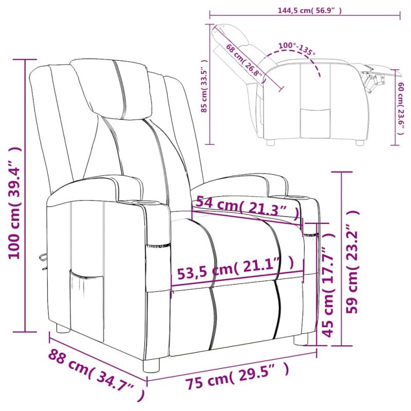 Облегнете се и се отпуснете в този изключително комфортен наклоняем стол! Функция за ръчно накланяне: Накланящият се стол е специално проектиран с 3 позиции на наклон, така че да можете да регулирате ръчно облегалката и поставката за крака според вашето удобство.Удобно седене: Дебело подплатената седалка, облегалката и широките подлакътници, покрити с изкуствена кожа, осигуряват уютно и топло усещане, което ви кара да се чувствате като в прегръдка, докато седите. Изкуствената кожа е много издръжлив материал. Устойчива е на петна, което я прави лесна за почистване с влажна кърпа. Гладката повърхност също така придава луксозен вид и красотата на истинската кожа.Здрава и стабилна рамка: Рамката, изработена от дърво и метал, осигурява здрава структура и стабилност. Този накланящ се фотьойл е удобен и издръжлив.