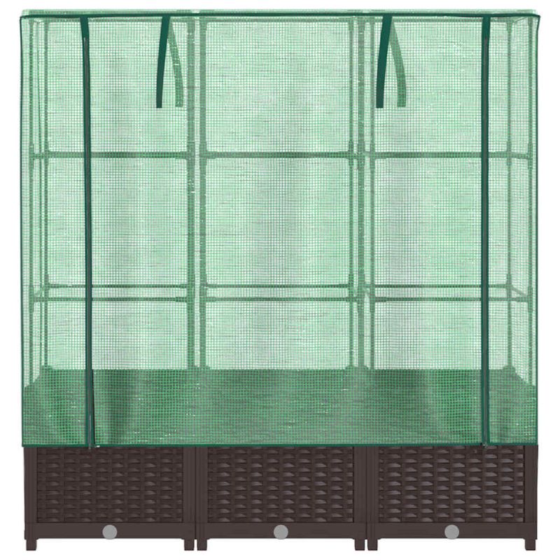 Тази повдигната леха с калъф оранжерия осигурява много пространство за отглеждане със здравата си носеща рамка.Здрава конструкция: Повдигнатата леха, изработена от полипропилен, има здрава рамка от железни тръби отгоре, която позволява на растенията да растат и да се катерят през нея.Функционален калъф: Повдигнатата леха е с водоустойчив полиетиленов калъф, който предпазва растенията от екстремни температури и не допуска насекоми, птици и дребни животни.Практичен дизайн: Повдигнатото легло е снабдено с ципове за проветряване, които ви позволяват да регулирате покривалото според нуждите. Освен това в горната част има въжета, които улесняват закрепването на мрежата към тръбата.Дизайн с вид на ратан: Повдигнатото легло с дизайн, наподобяващ ратан, придава естествен чар на външното ви жизнено пространство.Широки приложения: Повдигнатата леха осигурява достатъчно пространство за вашите растения, зеленчуци, билки и цветя. Можете да го използвате в градини, дворове, балкони и т.н.