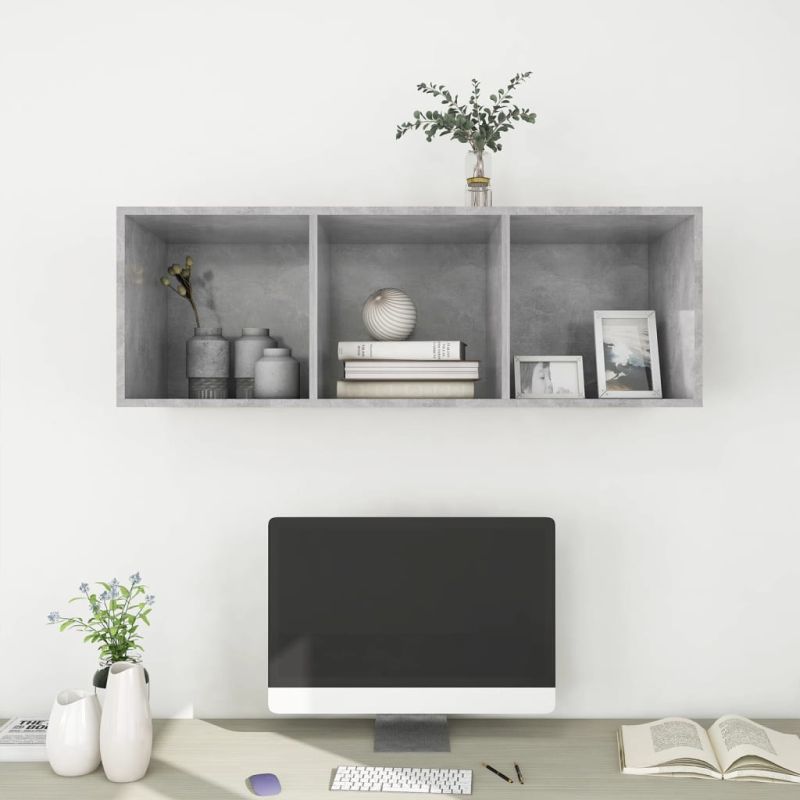 ТВ шкаф за стенен монтаж, бетонно сив, 37x37x107 см