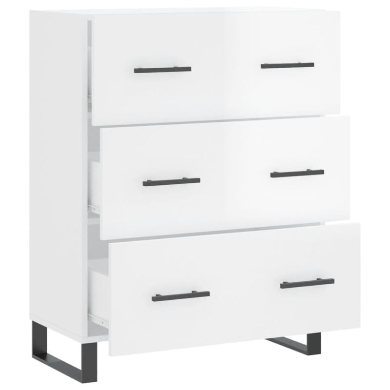 Сайдборд, бял гланц, 69,5x34x90 см, инженерно дърво