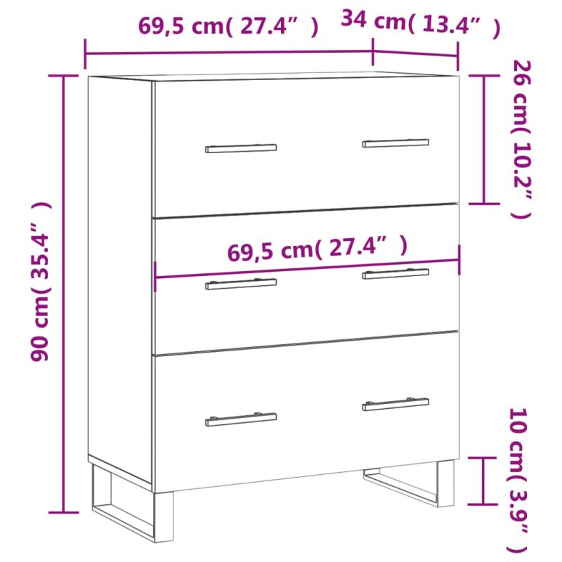 Този класически сайдборд има непреходен вид, което го прави идеално допълнение към вашия дом. Издържлив материал: Инженерната дървесина е с изключително качество с гладка повърхност и също така се отличава със здравина, стабилност и устойчивост на влага.Достатъчно място за съхранение: С 3 чекмеджета, бюфетът осигурява достатъчно място за поддържане на вашите ежедневни неща, организирани и подръка.Декоративна функция: Стабилната горна част на този шкаф е идеална за подреждане на декоративни предмети, фоторамки и саксийни растения.Метални крака: Металните крака на шкафа за съхранение добавят спокоен стил към вашия интериор, като същевременно гарантират стабилност. Внимание:За предотвратяване на преобръщане този продукт трябва да се използва с предоставения анкер за стена.