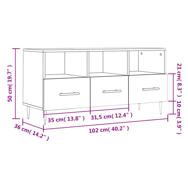 ТB шкаф, опушен дъб, 102x36x50 см, инженерно дърво