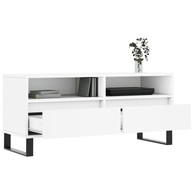 ТВ шкаф, бял, 100x34,5x44,5 см, инженерно дърво
