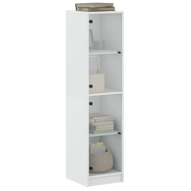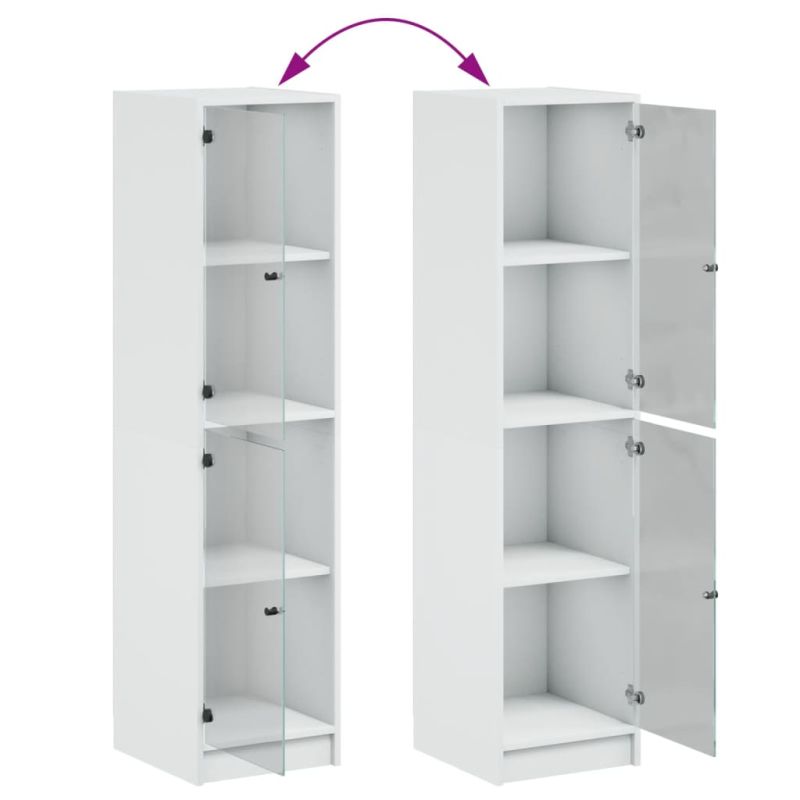 Висок шкаф със стъклени врати, бял, 35x37x142 см