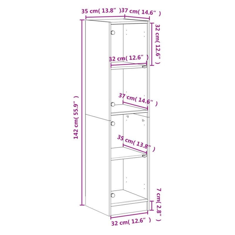 Търсите стилен висок шкаф? Този висок шкаф добавя елегантен чар към вашия интериор! Издържлив материал: Инженерната дървесина е с изключително качество с гладка повърхност и се отличава със здравина, стабилност и устойчивост на влага.Достатъчно място за съхранение: Шкафът предоставя достатъчно място за съхранение, където да държите различни ваши вещи добре организирани и леснодостъпни.Практични стъклени врати: Поддържайте пространството си свободно, като скриете дребните неща от първа необходимост зад вратите на шкафа. В допълнение, стъклените врати ви позволяват да виждате вътре в шкафа за съхранение, така че да разположите артикулите красиво. Добре е да се знае:За предотвратяване на преобръщане този продукт трябва да се използва с предоставения анкер за стена.