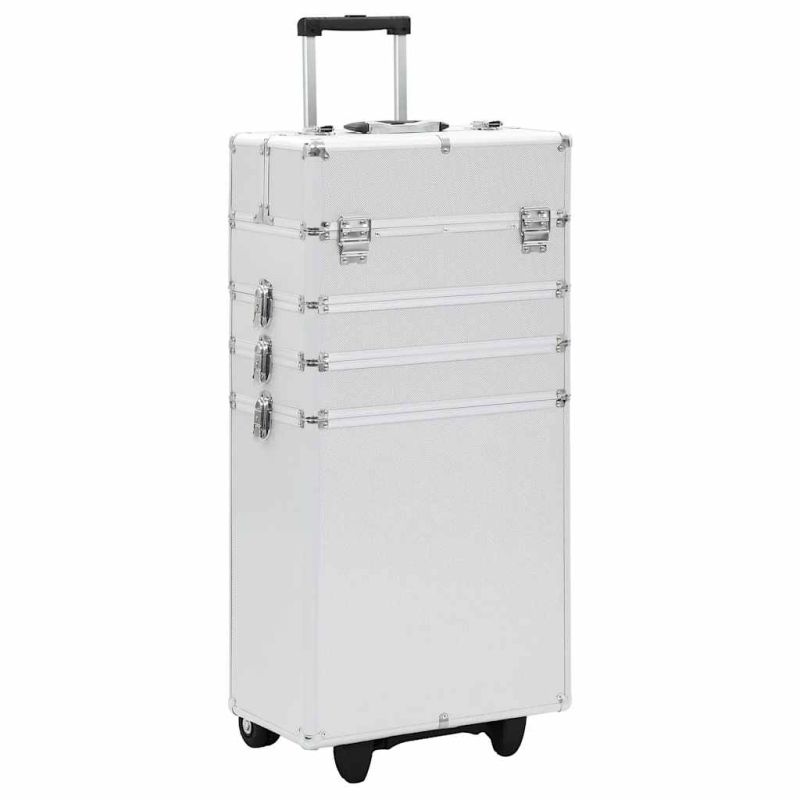 Куфар за грим на колелца, алуминий, сребрист