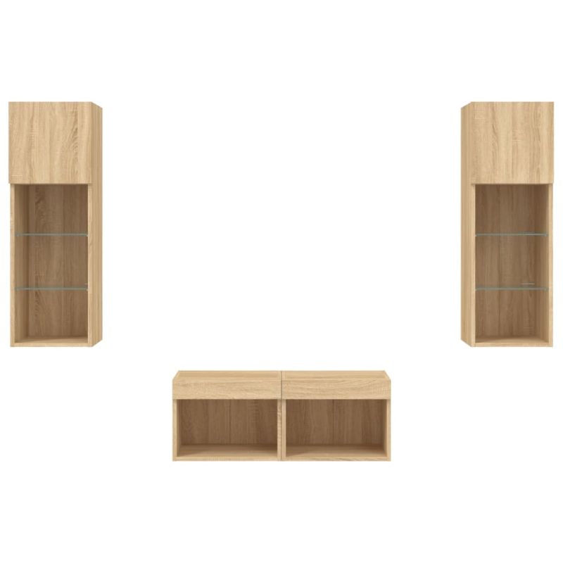 ТВ стенни шкафове, 4 части, с LED светлини, сонома дъб